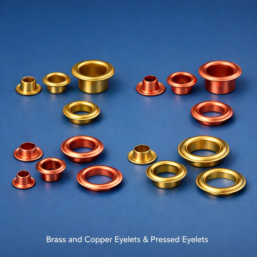 - Brass Garment Eyelets – Fine-pitch decorative eyelets for fashion garments, bags, and shoes